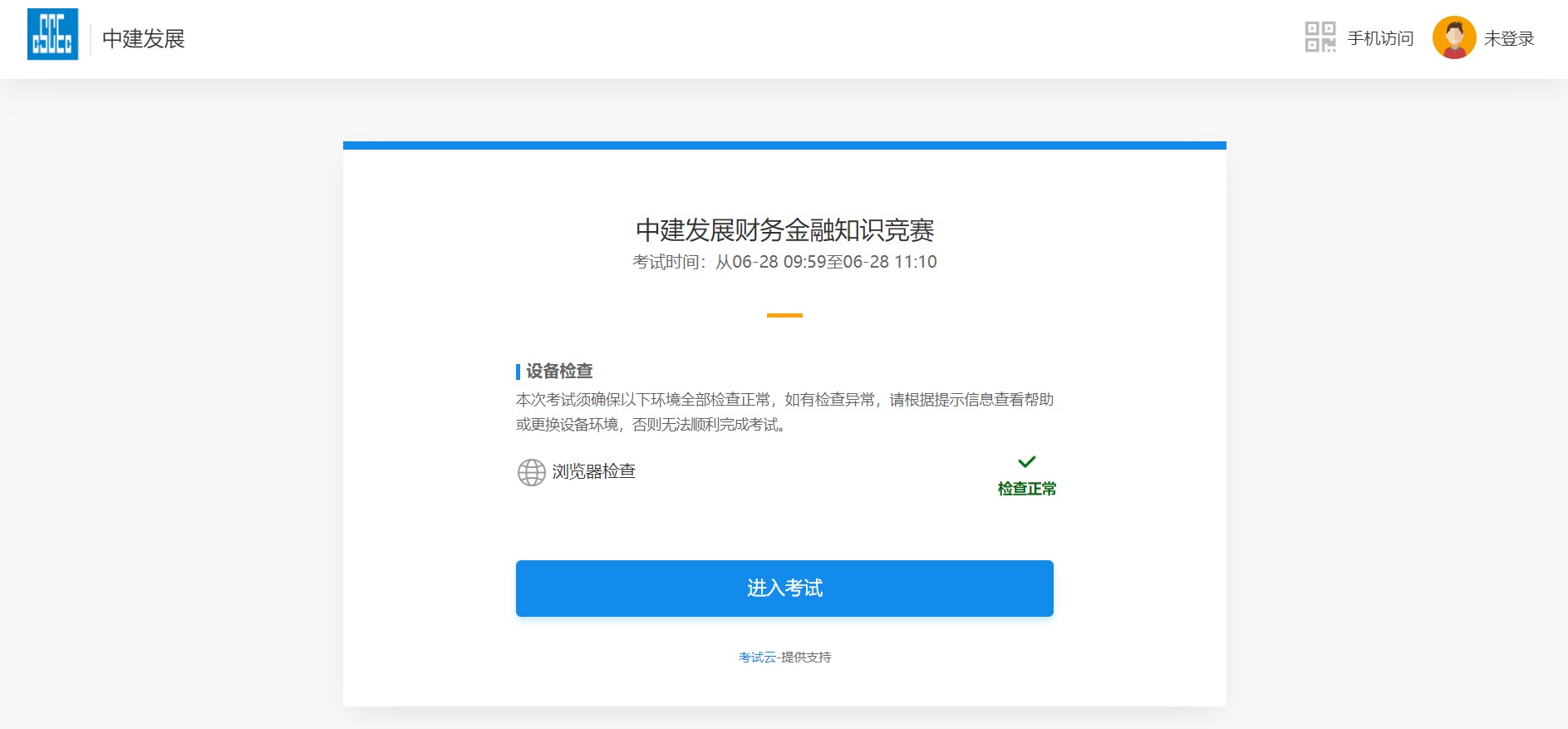 中国建筑发展有限公司(简称“中建发展”)是中国建筑新兴产业的投资培育平台,是中国建筑探索生态环保、产业数字化和“双碳”战略主体公司。为贯彻国家人才强国战略,加快建设世界一流财务管理体系,举行了中国建筑首届财务金融知识竞赛中建发展个人组预选赛。经过多方考察,决定本次竞赛选择使用考试云平台在线上举办。