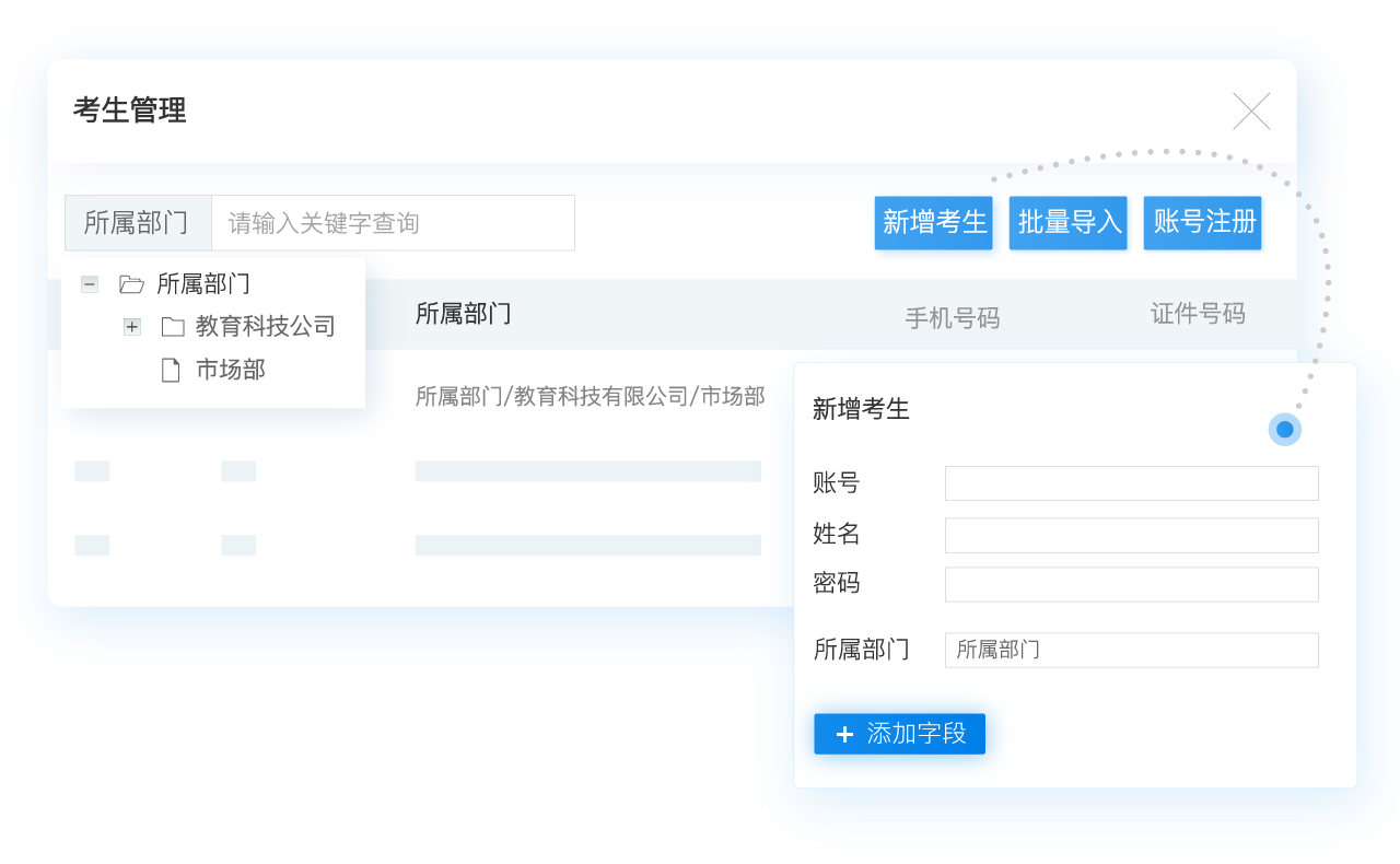 活动负责人通过Excel表格按组织部门整理好参赛职工的信息,为每一位参赛者设置一个具有唯一性的参考账号,账号密码为参赛者身份证号后六位;设置完毕后在创建竞赛试卷时,选择账号密码考试的参加方式,指定安排参赛组织部门参加竞赛答题。