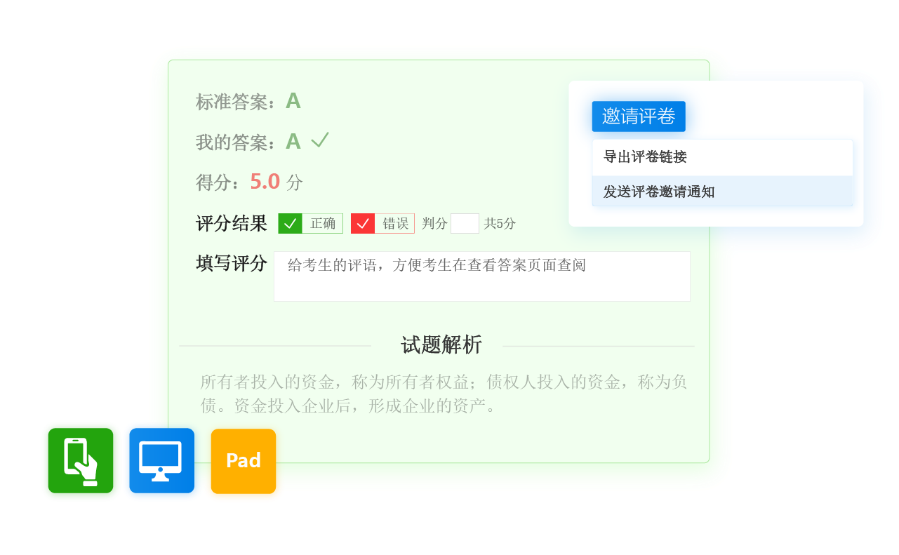 评卷结果会直接同步至系统后台,人数负责人可直接查看。